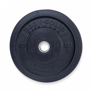 Body-Solid Full Commercial /Premium Bumper plates are Made in the USA with recycled materials and a Stainless Steel bushing for long life and durability. Made to withstand the abuse in any weight room environment, the Premium Bumper plates wont chip floors, are quieter and safer than cast plates. These durable plates are thinner than most bumper plates allowing users to load more weight on bars and weight carriage systems.