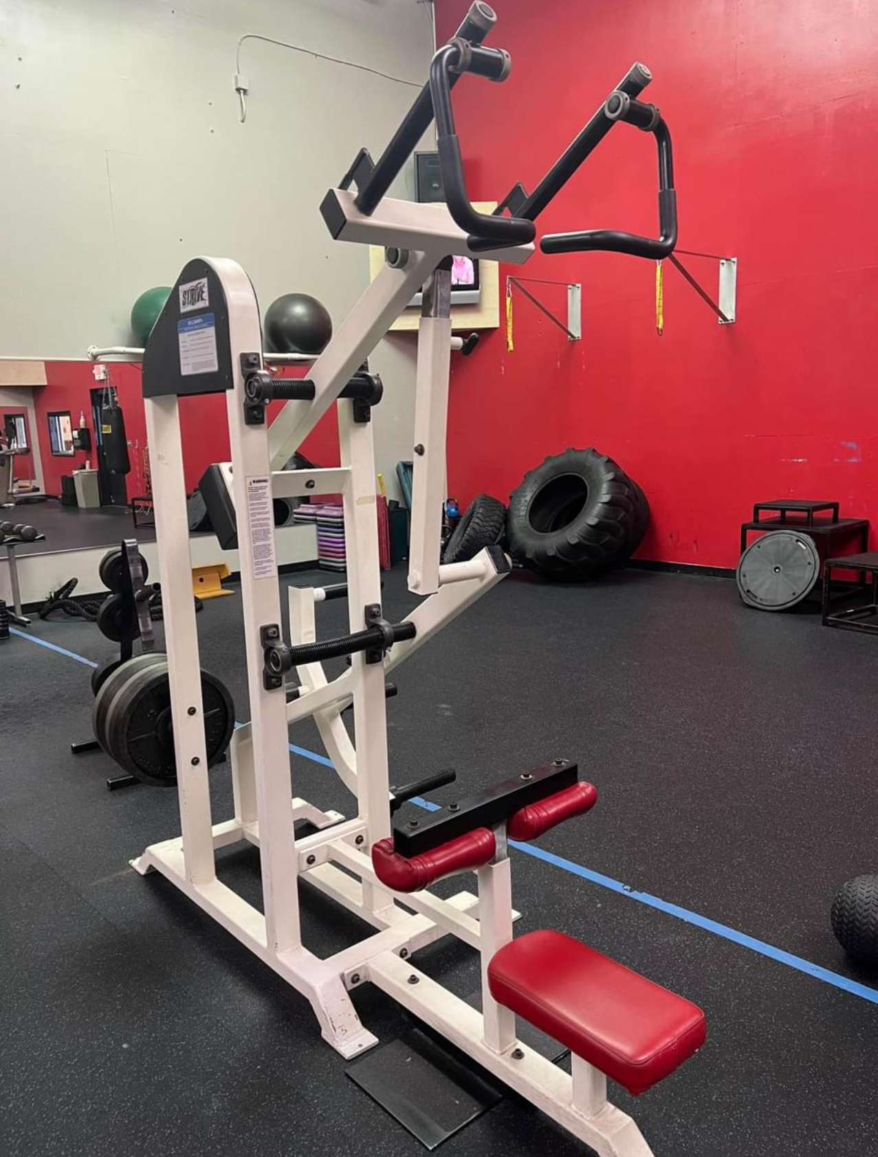 Original Strive plate loaded lat pulldown w/Smart Strength Technology. This is a RARE machine and blows away the imitation Prime copy. Nothing beats the original machines. This machine feels amazing! It gives such a crazy contraction and squeeze that simply can’t be replicated by any other machine or exercise. Unit has been cleaned, serviced and is in excellent condition.